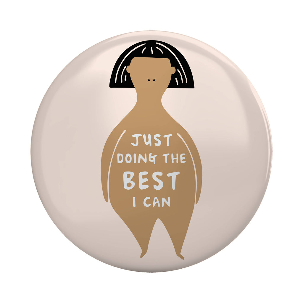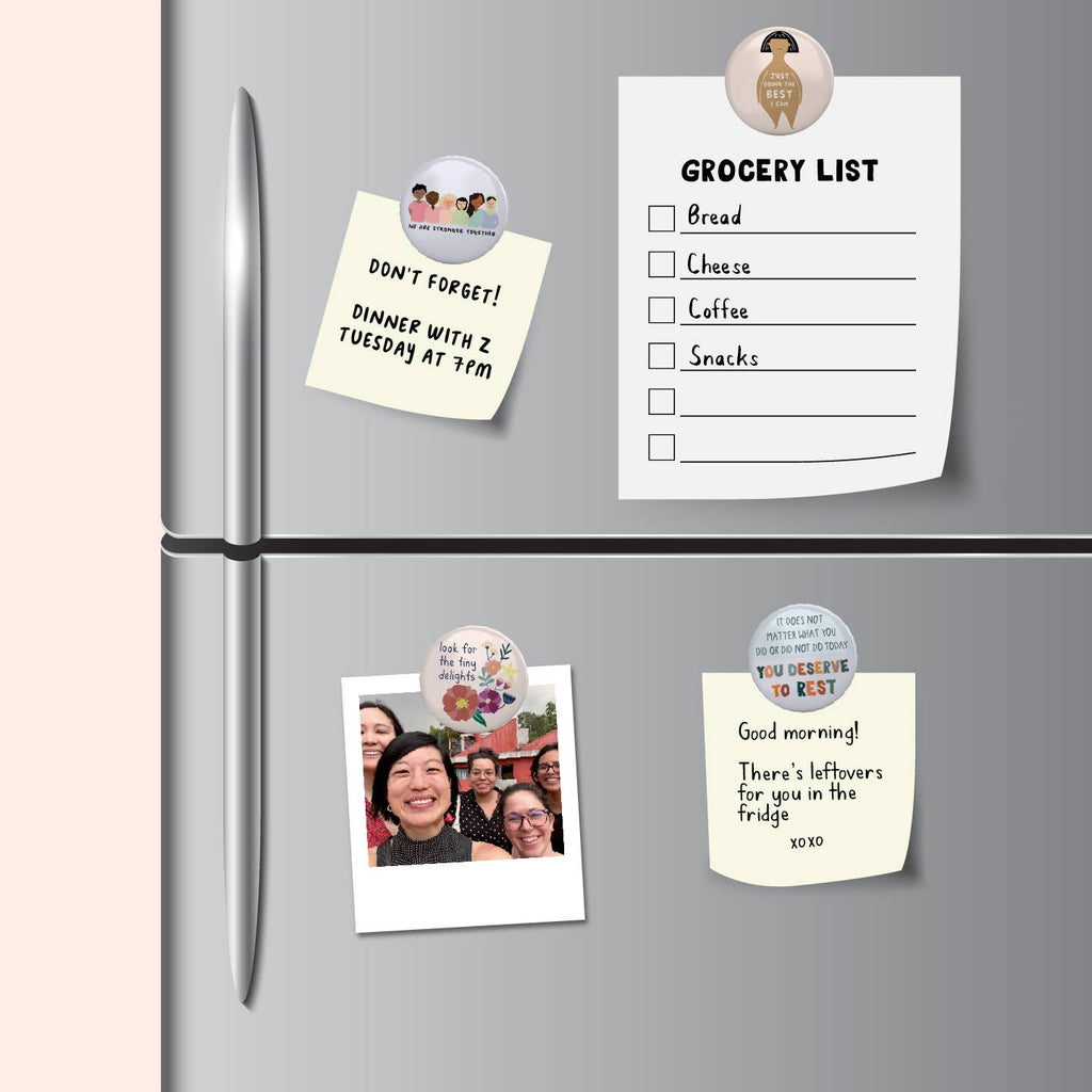 A cute and relatable magnet that's great for self-love and mental health-related gifts.