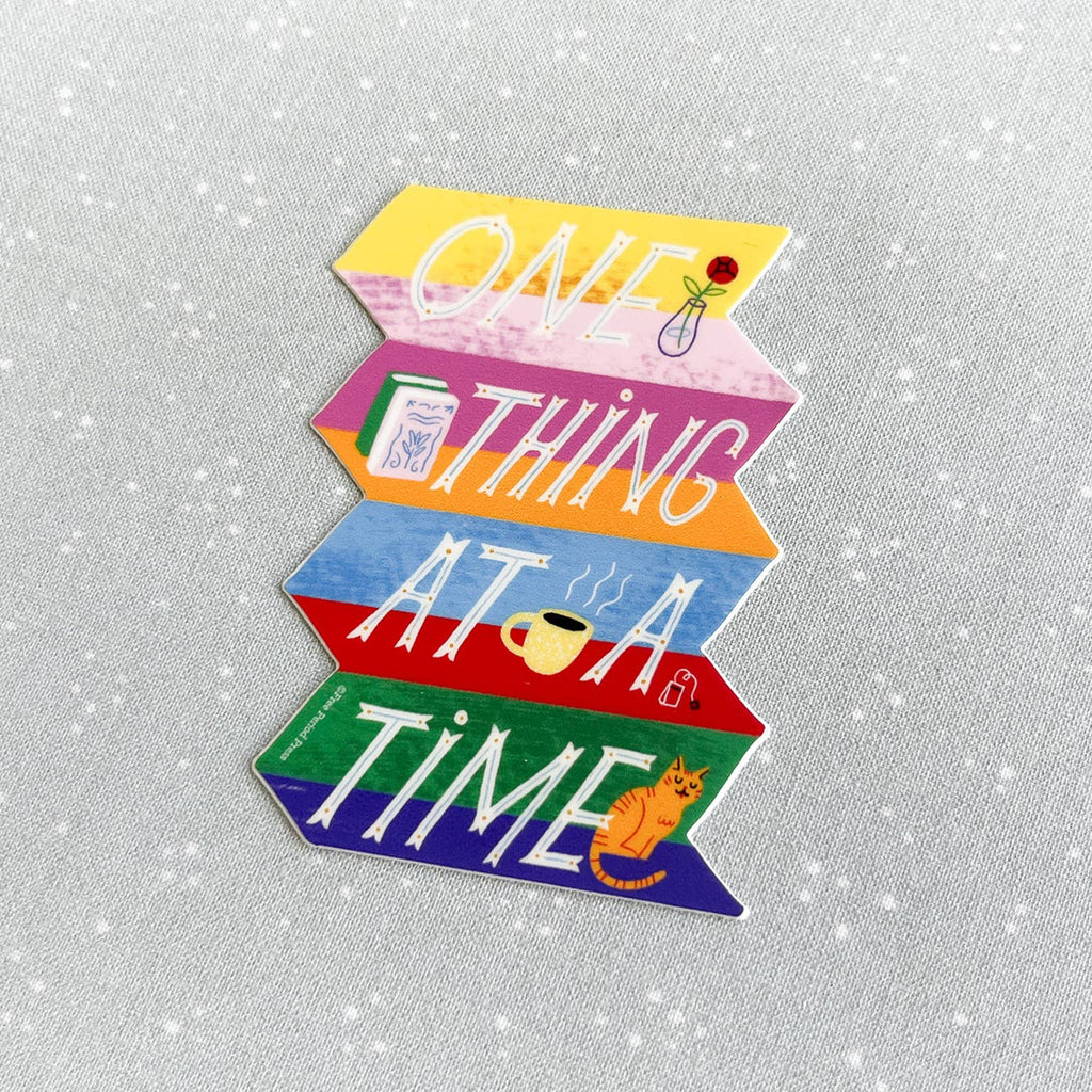 Keep life simple and focused with our One Thing At a Time sticker, a gentle reminder for every day.