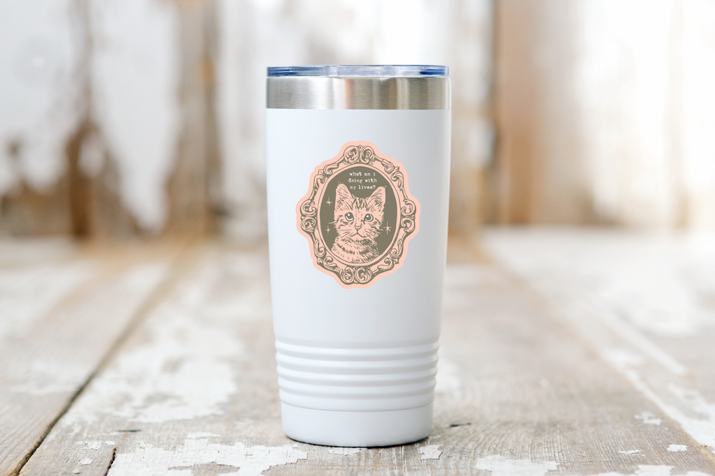 What Am I Doing With My Lives Sticker - cat, kitty, funny