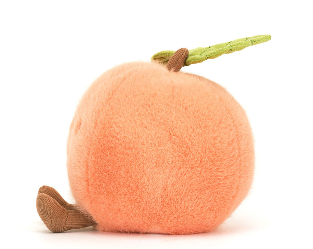 Perfectly ripe and huggably round, Amuseables Peach brings natural sweetness. Playfully detailed with soft halo fur, fudge cord boots and a chic side-dimple, as well as a cord stalk and stitch suedette leaf, this peach brings orchards of smiles.