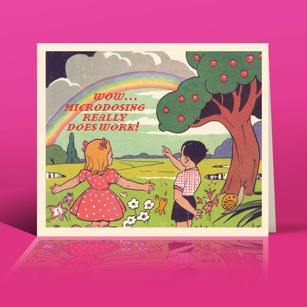 Magic Mushrooms make the world go around... for some people! And microdosing has become so widespread that we introduce our first micro-dosing card here! Happy Birthday greeting card. Funny, offensive, and as always.... delightful. KD25