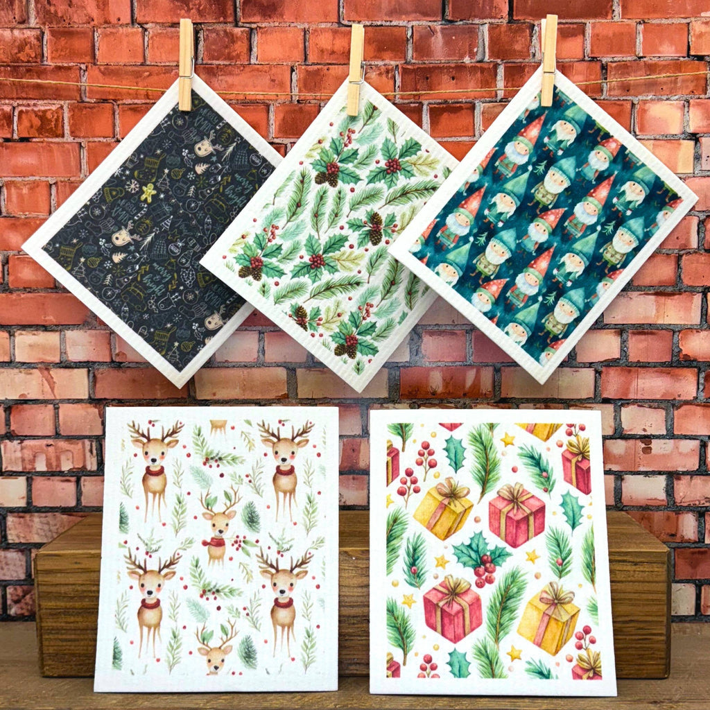 Christmas Reindeer Swedish Dishcloths Holiday Decor