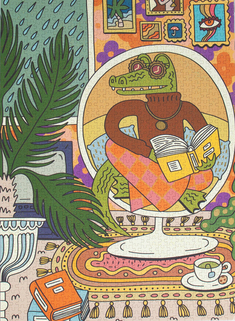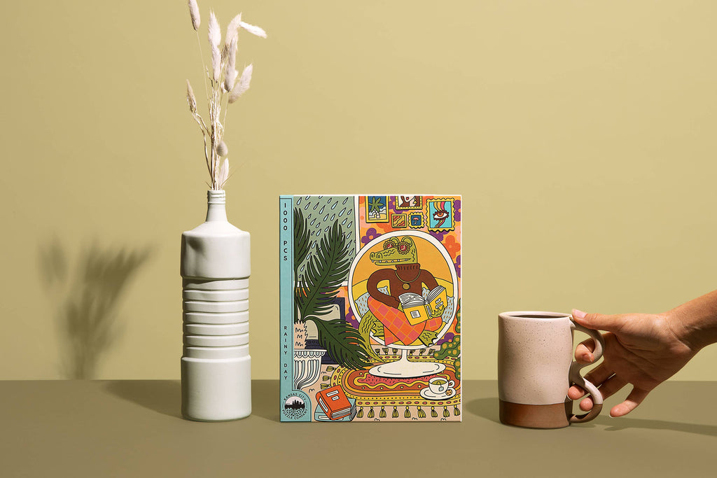 Nostalgic, moody and vibrant, this puzzle is filled with the unique color work and funky, cool art that artist Emily M. Reay is loved for. It's a fan favorite and one of the most framed puzzles we offer. A modern joy in 1,000 illustrated pieces!