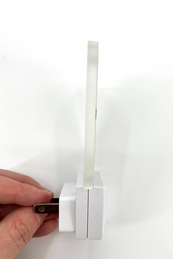 We use a durable, non toxic adhesive to attach the fabric image to the night light then seal it to ensure durability.