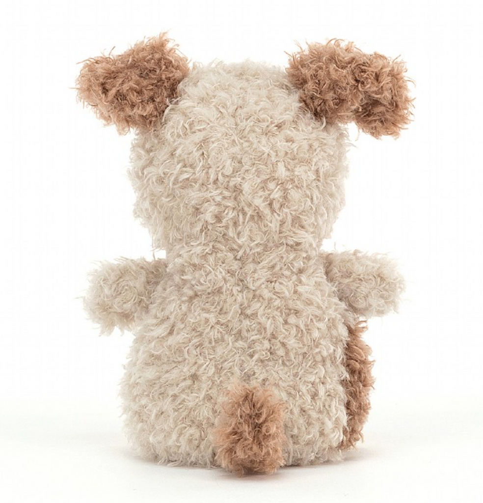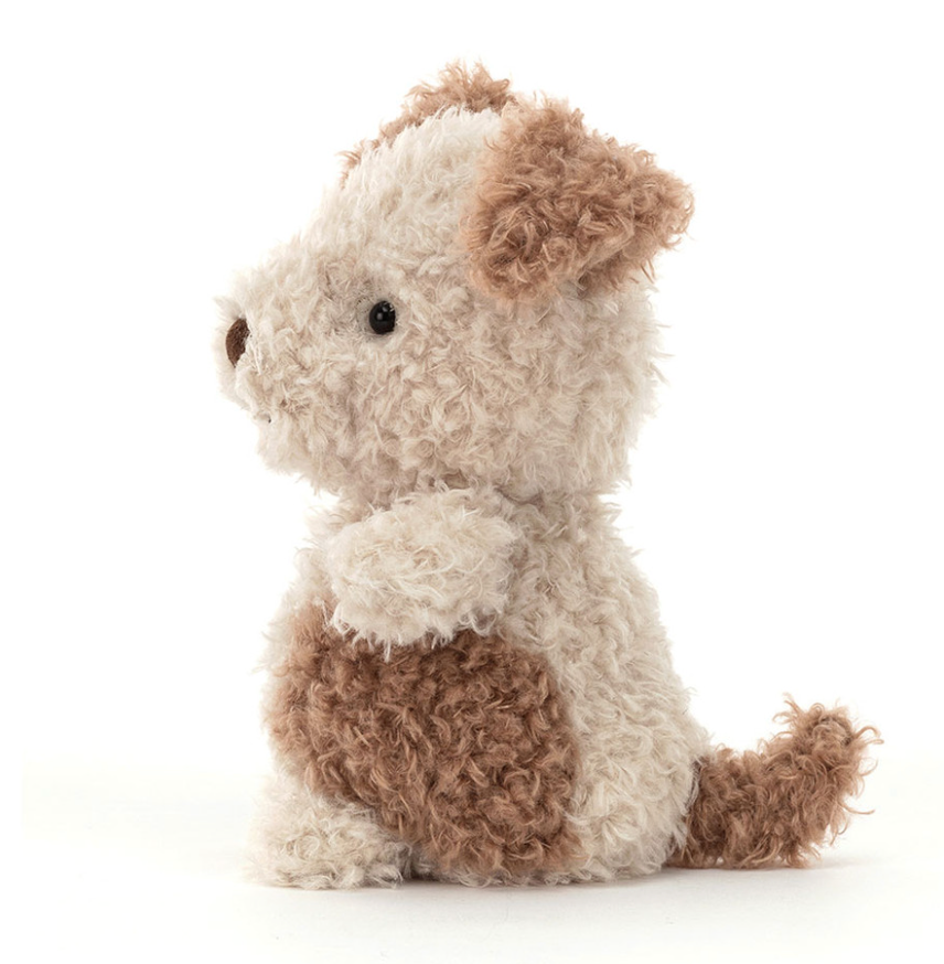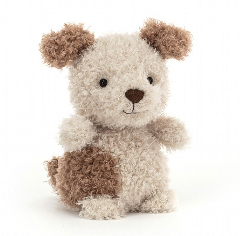 Little Pup has absolutely no idea what he’s doing, but he’s doing it with conviction. A soft-footed optimist in cocoa and cream, he’s recently appointed himself Head of Welcome at the Jellycat Post Office, watched over by Derreck Dog.