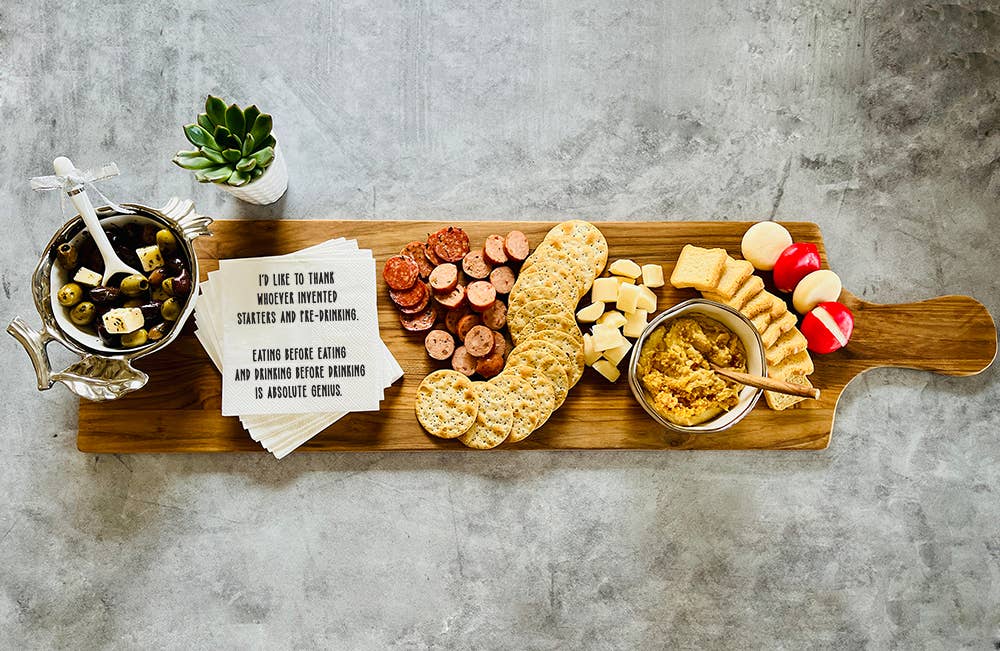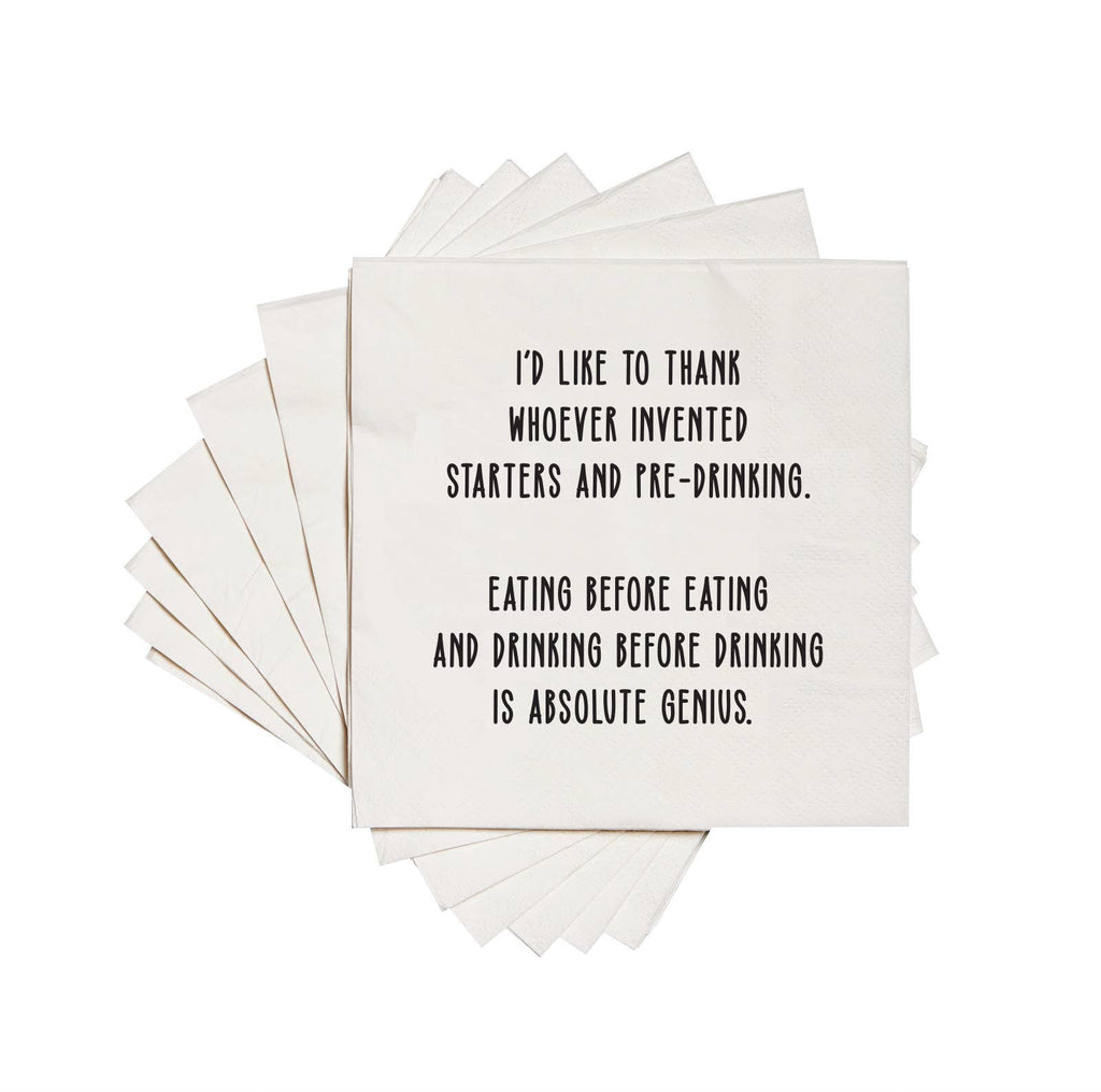 Our 3-ply, 5x5 folded, white napkins are printed with crisp black ink. They come cellophane wrapped in packs of 20, and we think they're some of the funniest on the market! (If we do say ourselves.) Why not add a little sass to your next cocktail party?! They even make a great hostess gift with a bottle of wine!