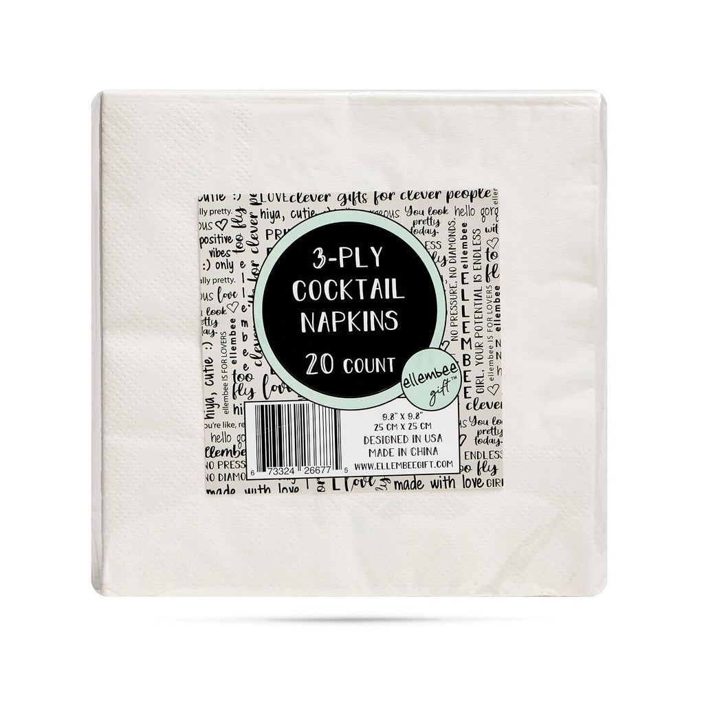 Our 3-ply, 5x5 folded, white napkins are printed with crisp black ink. They come cellophane wrapped in packs of 20, and we think they're some of the funniest on the market! (If we do say ourselves.) Why not add a little sass to your next cocktail party?! They even make a great hostess gift with a bottle of wine!