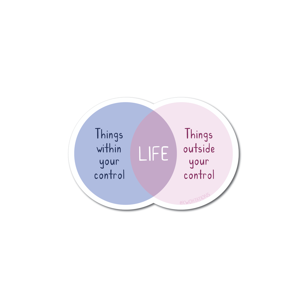 This matte vinyl sticker features a simple Venn diagram of what we can control and what we can’t — a gentle reminder that real life unfolds in the middle. Because life usually happens somewhere in the overlap.