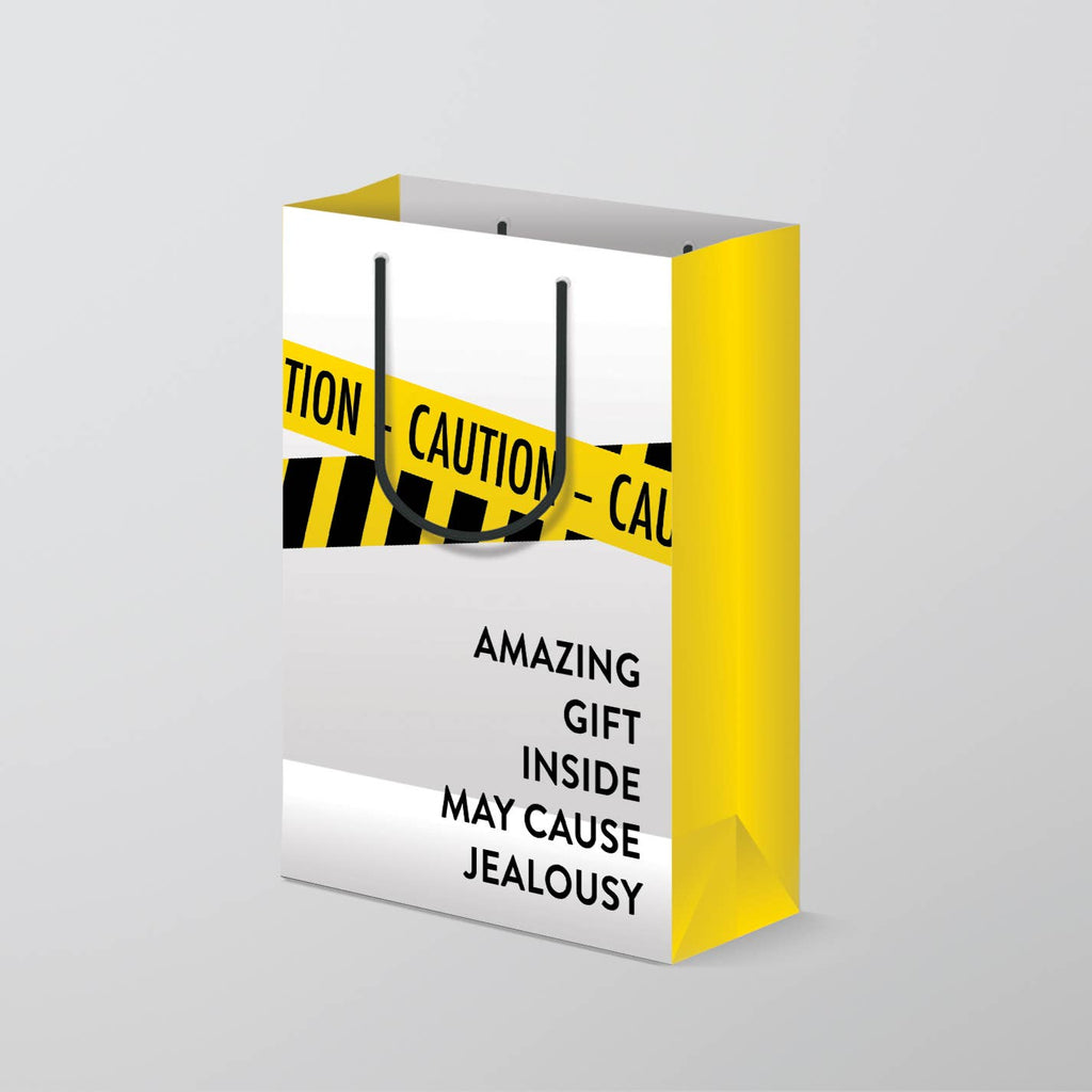 This gift bag is made from 200 GSM heavyweight paper and features gusseted sides and a glued-in cardboard reinforced bottom. Each gift bag also features metal eyelet reinforcements and premium braided rope handles, that perfectly complement each bag design.